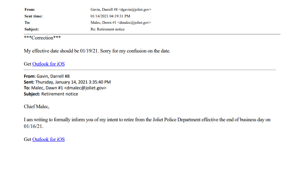 On Jan. 12, new Joliet Police Chief Dawn Malec issued a memo announcing that Gavin was being demoted back to sergeant, his rank from 2018 before Al Roechner promoted him and made him a trusted confidant within Roechner's upper police command staff.