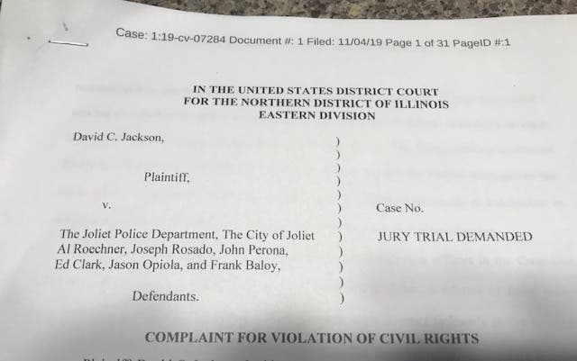 Jackson has been on Joliet's police force since 1995, his lawsuit states.