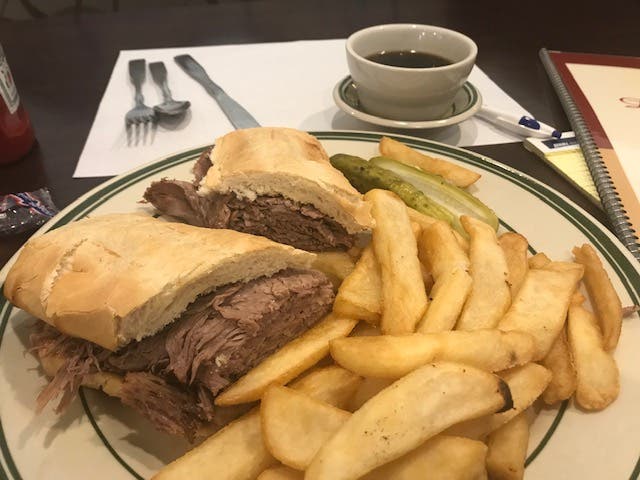 Earlier this week, I visited Diamand's and ordered the Famous French Dip Sandwich, which came with fries and a cup of soup. Not counting tax, my meal cost $9.95.