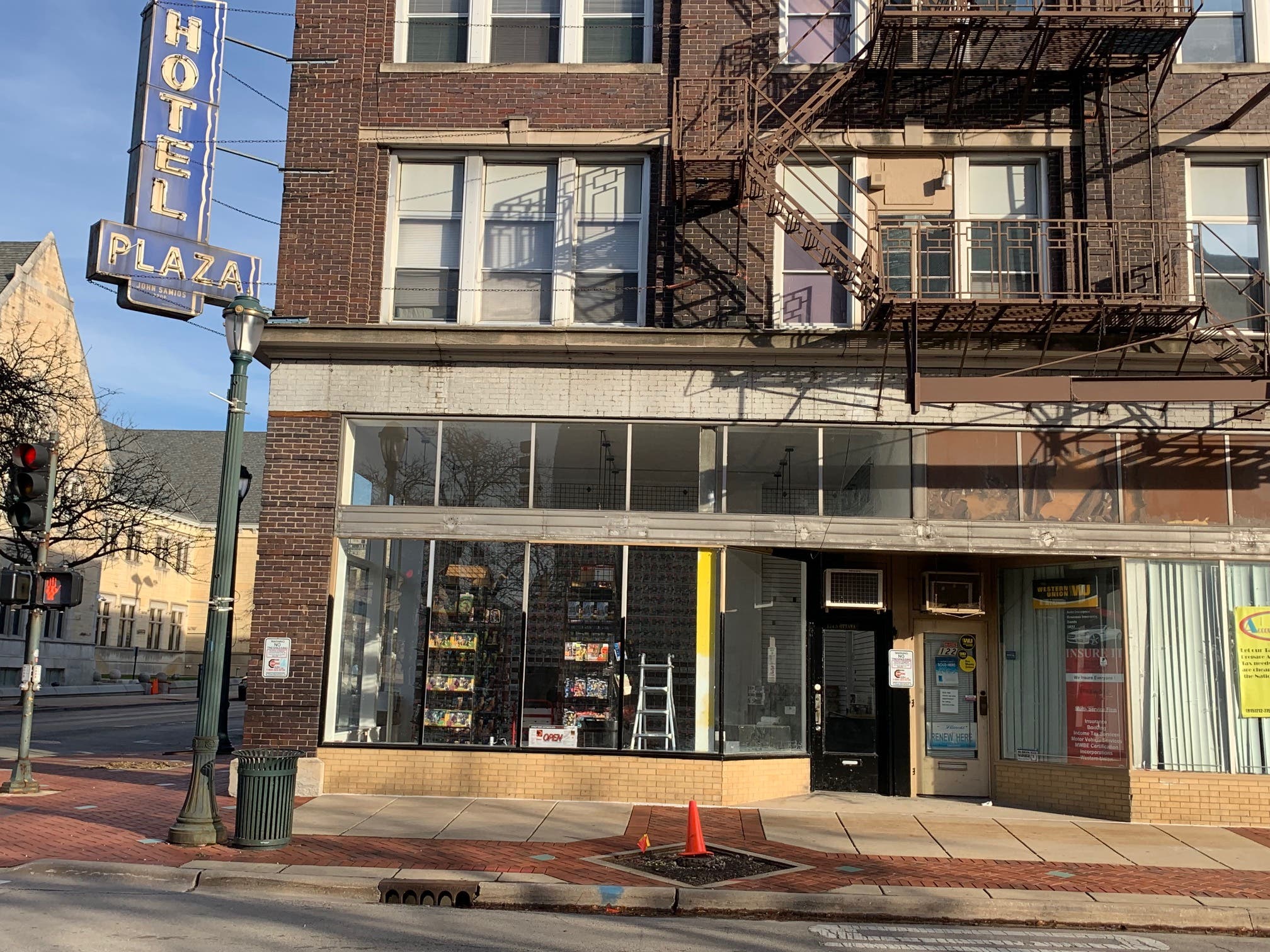 The new storefront for the Dragon's Den Shop is directly across the street from the old St. Mary's Carmelite Catholic Church in downtown Joliet.