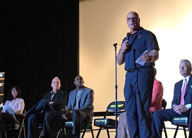 JOLIET, IL - There was plenty of star power inside the Joliet West Auditorium on Tuesday evening for the Will County Substance Abuse Prevention Coalition's parent and youth forum. The speakers included a pair of Joliet hometown sports heroes, Tom Thayer, who played on the 1985 Super Bowl champion Chicago Bears, along with Roger Powell Jr., who made the NBA with the Utah Jazz. The panel also included current Chicago Bulls guard Cameron Payne, former Chicago Bulls coach Doug Collins as well as Jolinda Wade, mother of Chicago Bulls star Dwyane Wade.