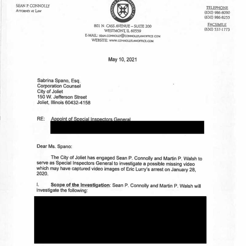 "The city has engaged Sean P. Connolly and Martin P. Walsh to serve as Special Inspectors General to investigate a possible missing video which may have captured video images of Eric Lurry's arrest on January 28, 2020," part of the document stated.
