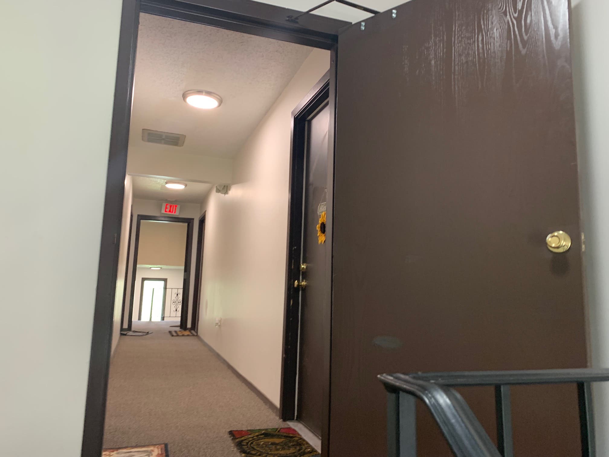 On the second floor stairwell, leading to the third floor, CSI Herda noted he saw "a large kitchen style knife with a black handle."
