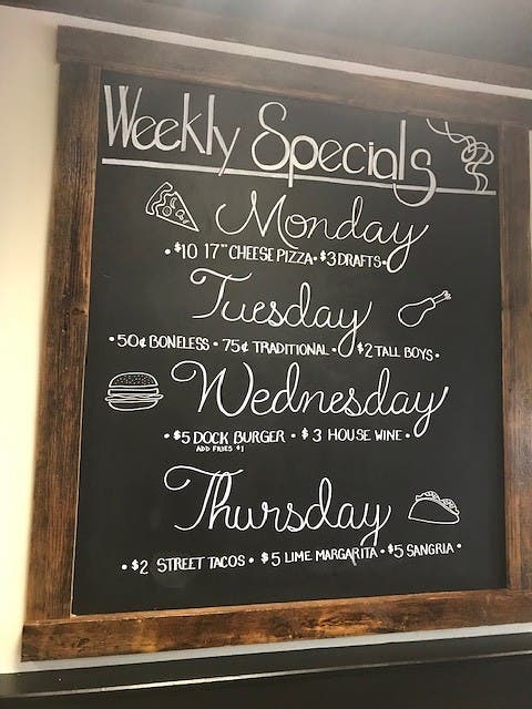 The Traftons told me they have been extremely happy with how The Dock's done so far. Actually, their bar and drinks are a big draw, especially their margarita flights.