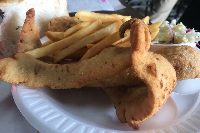 I ordered the three-piece meal of Alaskan walleye. It came with fries, coleslaw and two pieces of bread. All for $10. (Several of the items on the menu are cheaper.)