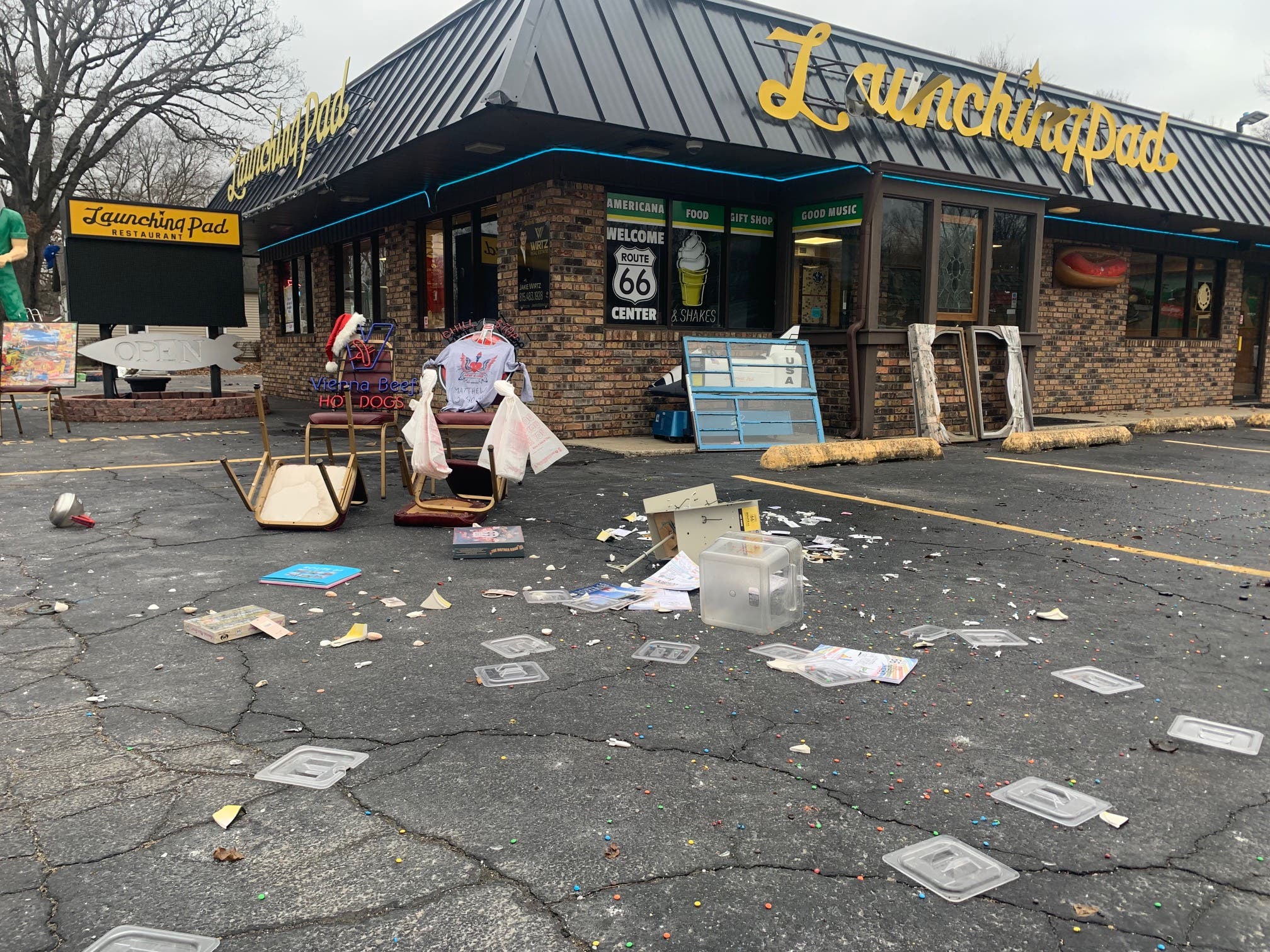 WILMINGTON, IL — Efforts to sell the shuttered Launching Pad restaurant and the Gemini Giant were derailed in early January when property owner Holly Barker was given two ordinance violation tickets from the Wilmington Police Department as a result of Barker's destruction of her own property, on Jan 2.