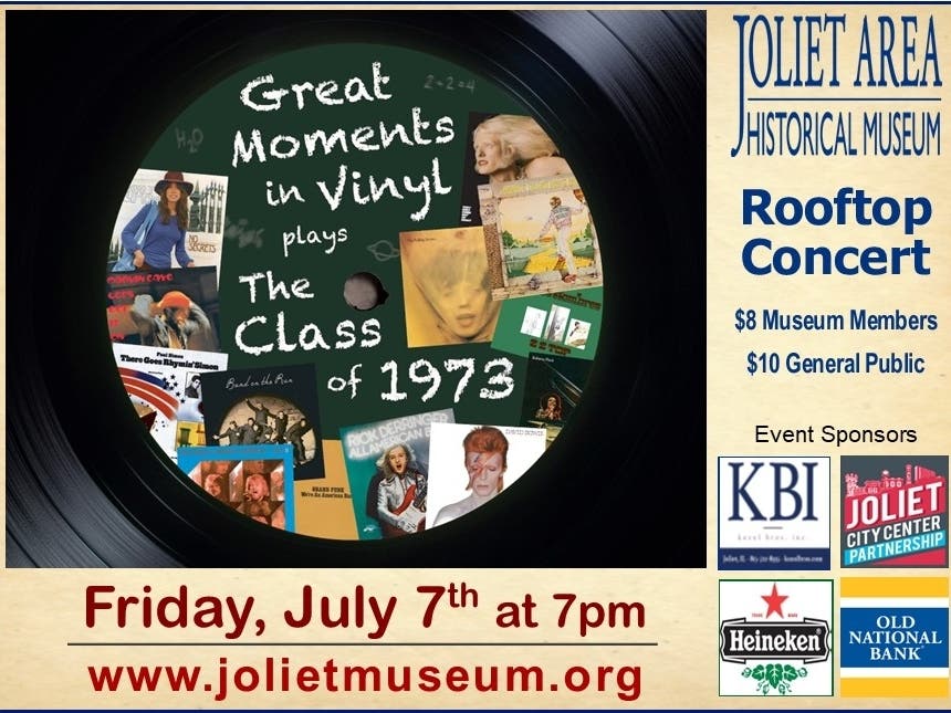 Great Moments In Vinyl performs live on the Joliet Area Historical Museum's Outdoor Rooftop venue on Friday, July 7th at 7pm (doors open 6:15pm).