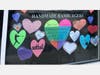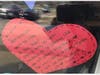 Another heart made of red paper read: "Soon enough you'll be able to hug loved ones; so long as you continue to be strong. We are all strong together. For now, send a text, make a call or drive over and wave!!!"