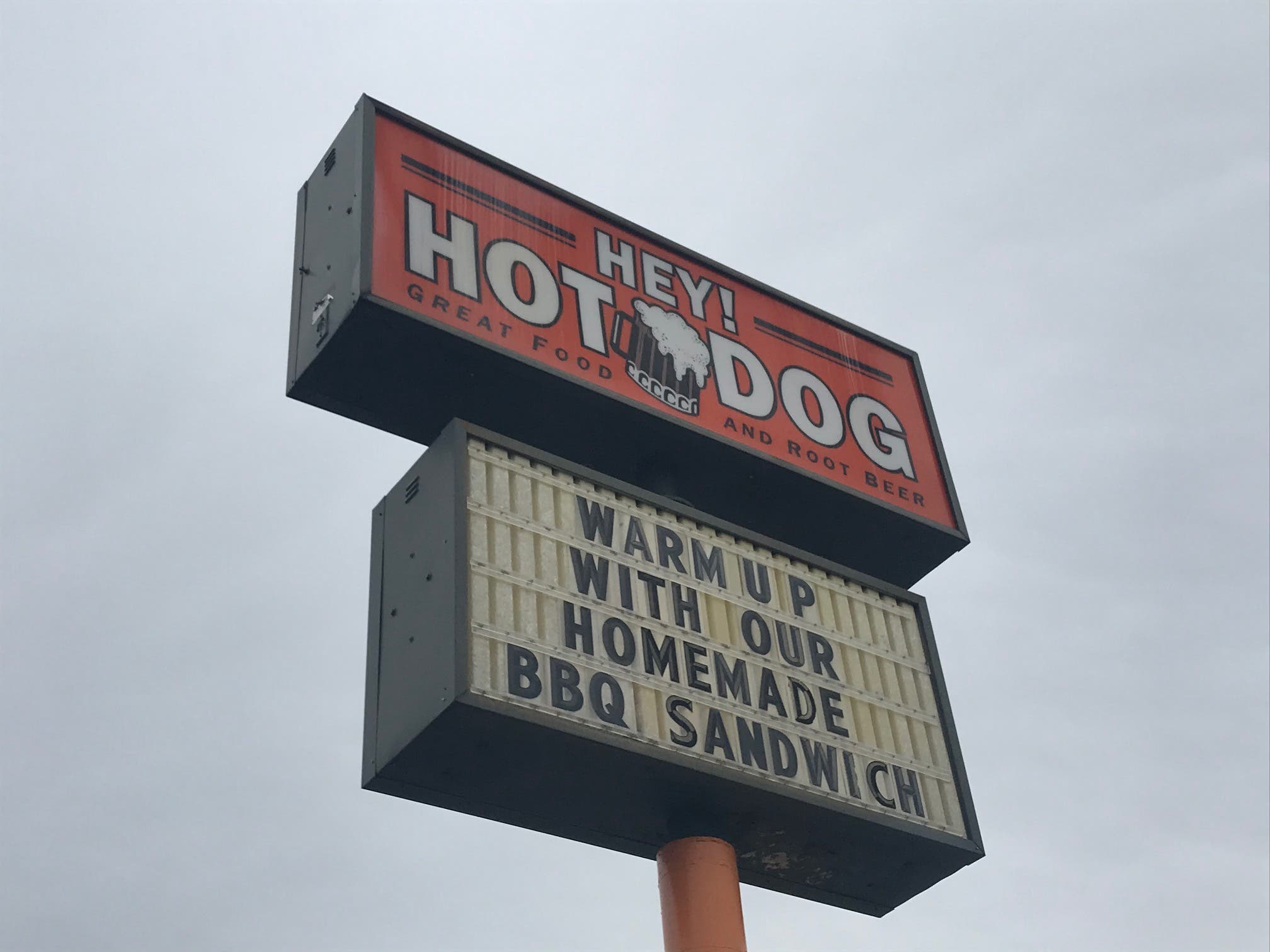 Hey! Hot Dog has remained open, Monday through Saturday, as a drive-up to-go service.