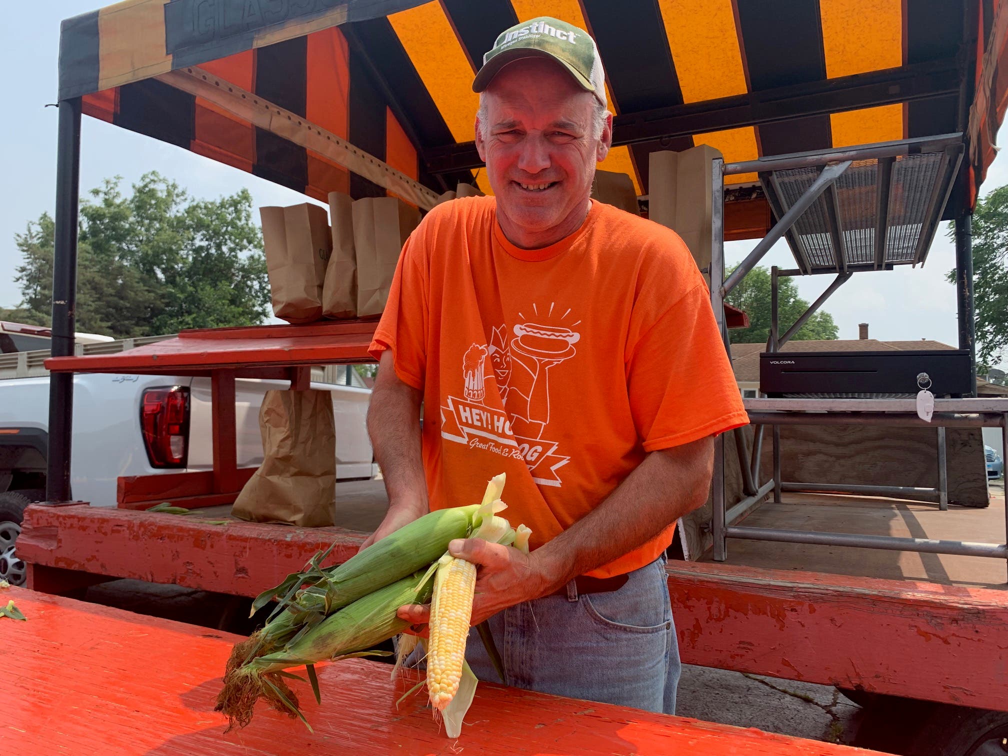 Hey! Hot Dog owner B.J. Uedelhofen, also a Shorewood area farmer, now has his sweet corn stand open six days a week at 601 Ruby St.