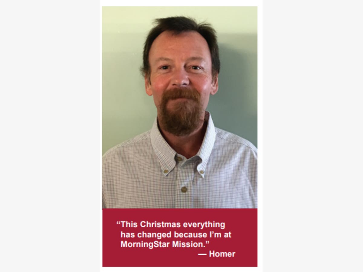 "My name is Homer. I know what it’s like to be on the streets at Christmas, cold and alone and numbing yourself to forget what day it is. This Christmas, everything has changed because I’m at MorningStar Mission," he wrote.