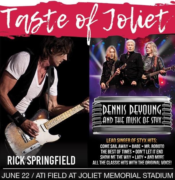 The Taste of Joliet website indicates that DeYoung will perform at 7:30 p.m. and that Springfield will take the stage at 9 p.m.