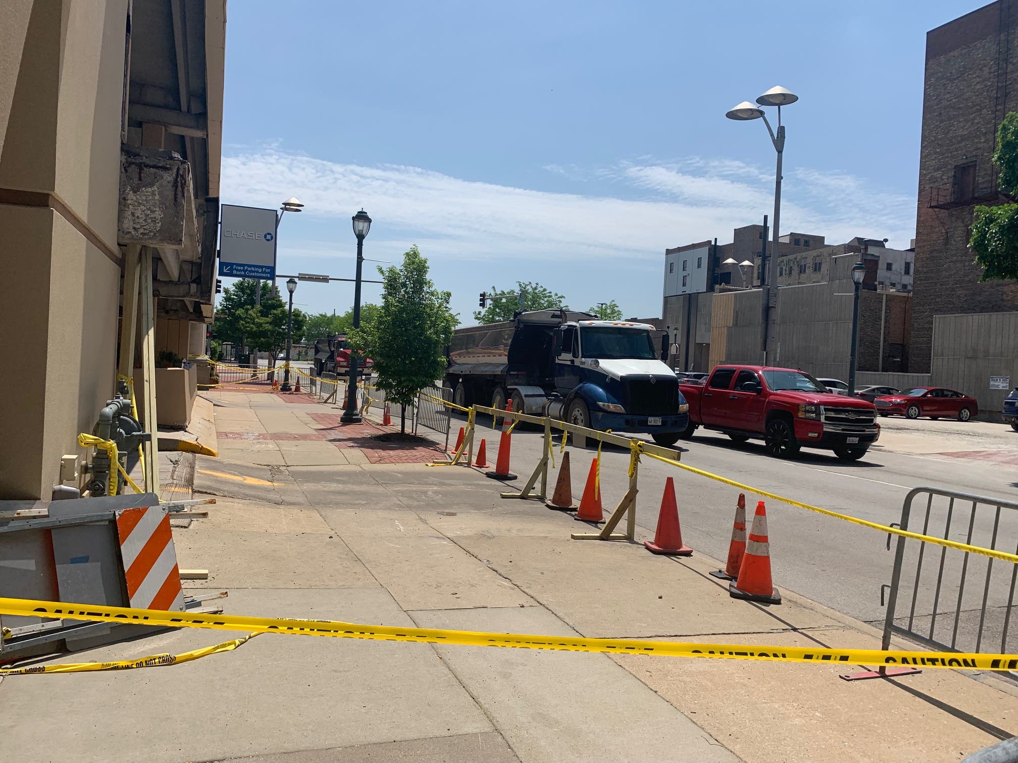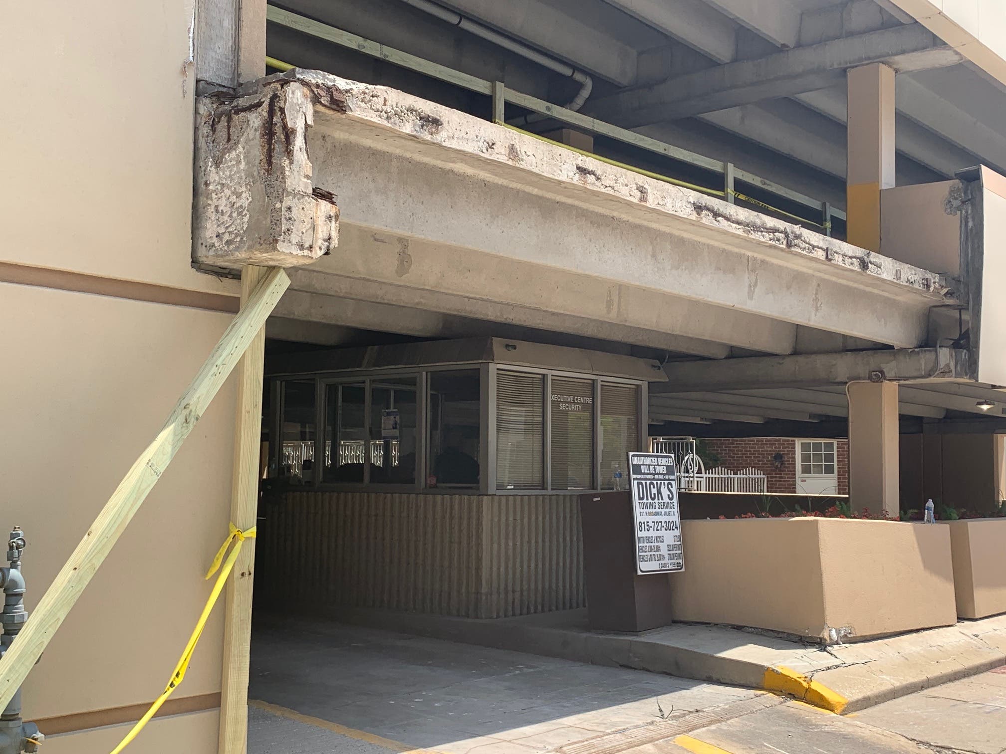 Nobody was injured when the section of concrete gave way last Thursday evening. On Tuesday, Joliet Patch found Bays in downtown Joliet and interviewed him. For now, Bays' private parking garage remains closed and a section of sidewalk is also cordoned off to keep pedestrians away.