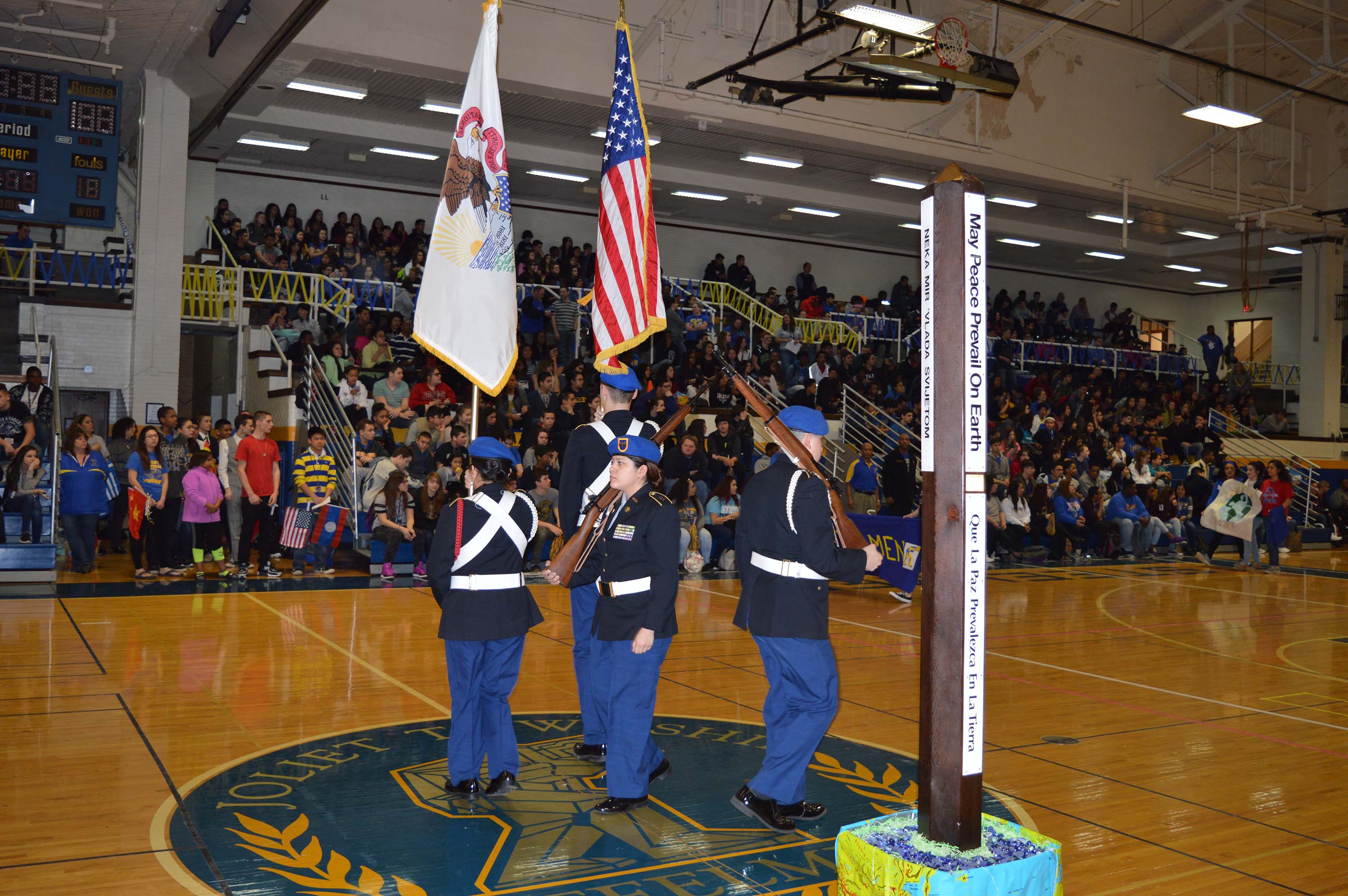 This is Central’s second Peace Pole constructed to promote a message of harmony and goodwill. “The original wooden Peace Pole was planted in 2001 in conjunction with the Centennial Celebration but was recently taken down when the Student Center Galleria was built,” said Joliet Central High School teacher Patti Edwards, who served as the driving force behind obtaining the new Peace Pole. “The old Peace Pole was refurbished by fellow teacher Vern Jordan and re-located, so it was the perfect opportunity to begin a campaign to further promote peace.”