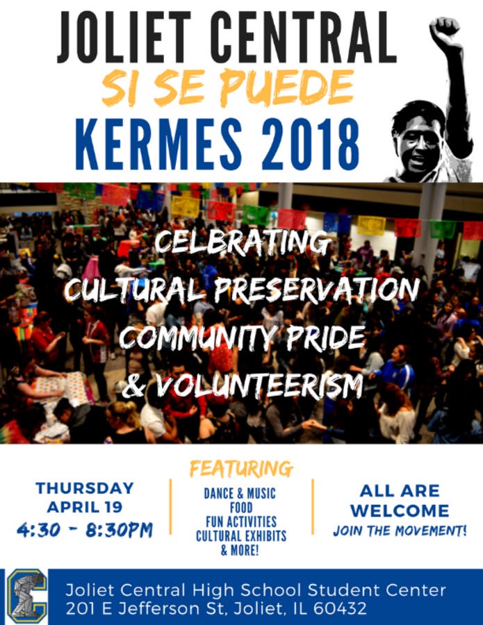 Joliet Central High School will host their third annual Kermés, a celebratory festival to honor the life and legacy of Cesar Chavez, on Thursday, April 19, in the Joliet Central Student Center. The “Sí Se Puede” (Yes We Can) Festival is a free event open to the community, alumni, parents, students, staff and the general public.