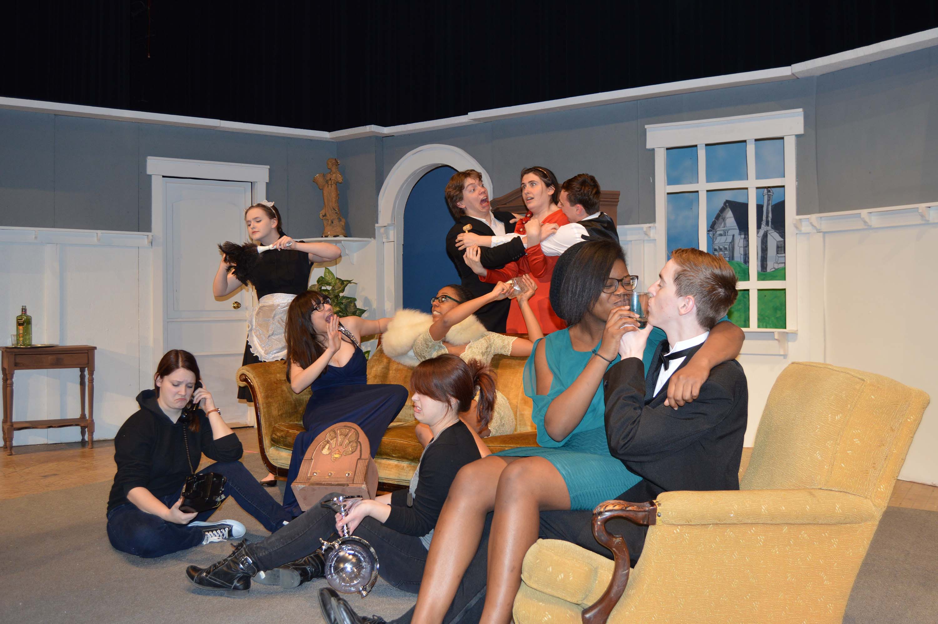 Cast includes Seniors Zariya Butler, Alex Kulak, and Kelly Goeing, juniors Jared Ellis, Katie Hrpcha, Haylie Aeschliman, Angelica Jarrett, Brennan Schultz, and An’Tonai Boykin, as well as Freshman Hannah Hagerty.