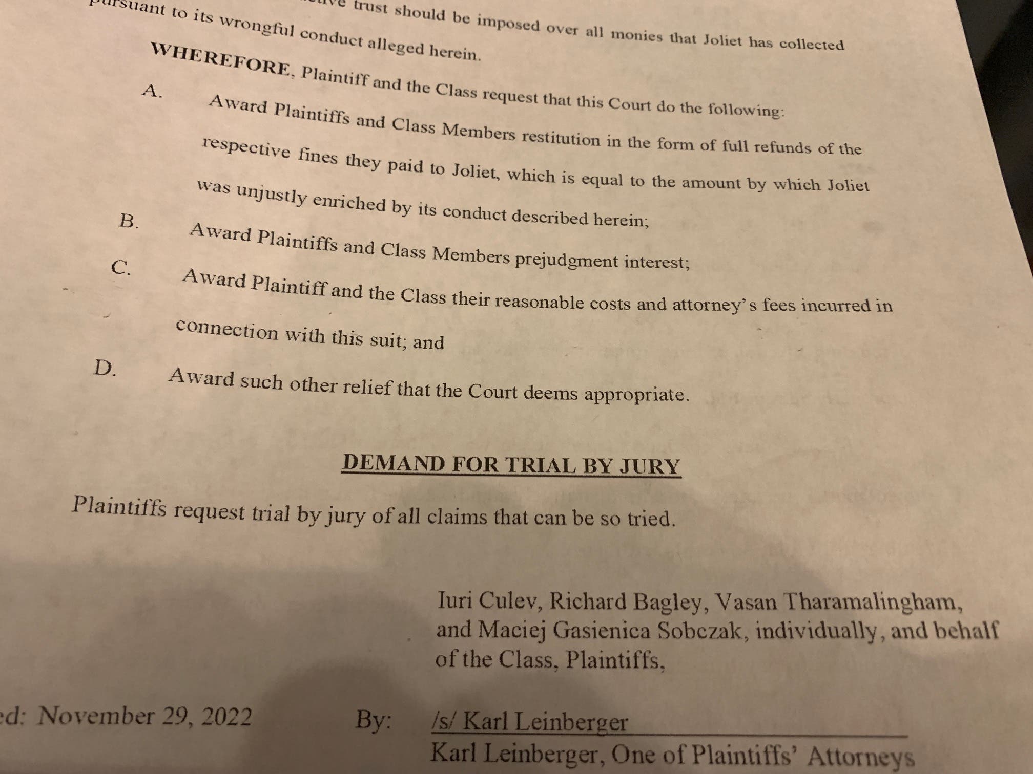 Class Action Lawsuit: 'Joliet Conducting An Illegal Scheme'