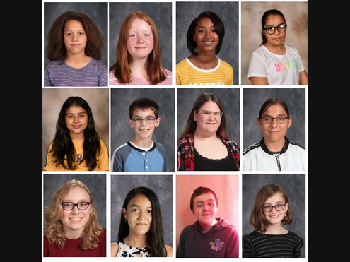 The students include: Dirksen Junior High: Kaylah Howard, Darek Leschber; Gompers Junior High: Valeria Damian, Meredith Diaz Sanchez; Hufford Junior High: Chloe Black, Esme Bryson, Aiden Hadley, Natalie Medina, Madelyn Warren; and Washington Junior High: Gabrielle Gavin, Gabriela Huerta, Rauri O’Hara.