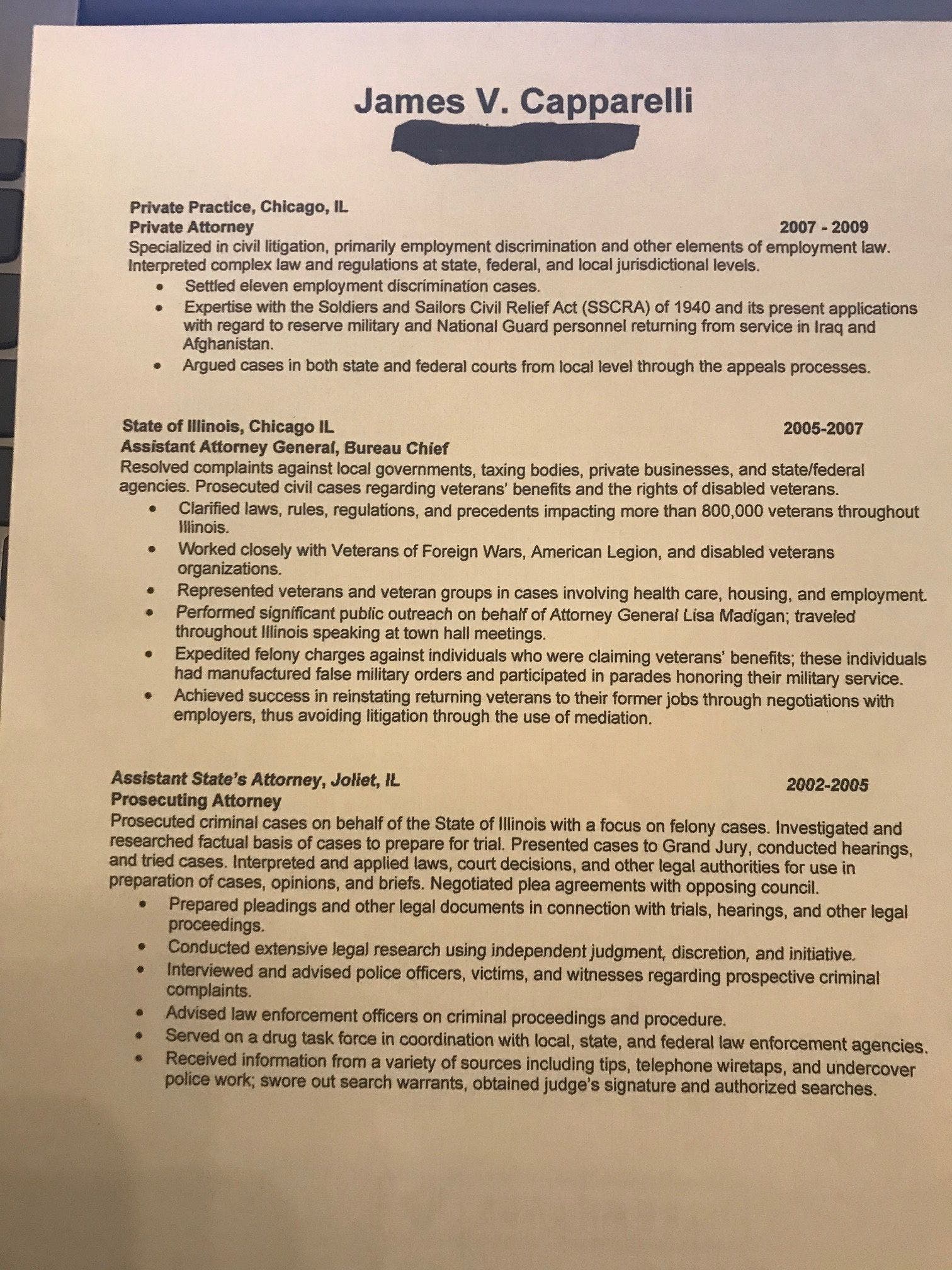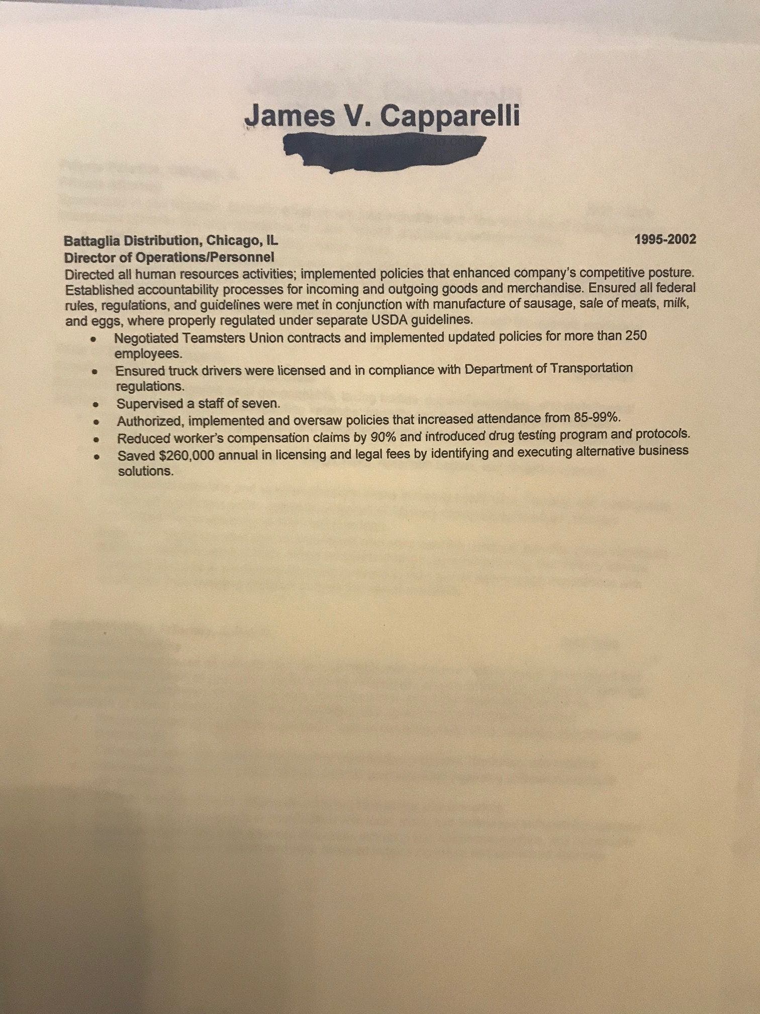 At the meeting, Capparelli provided Joliet Patch's editor and Bob Okon of The Herald-News with copies of resume. Here's what it says: