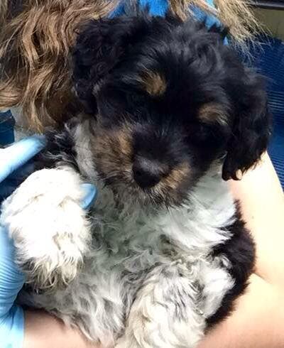 The tiny black, brown and white Shih tzu mix puppy weighs about four pounds, Ulreich said.