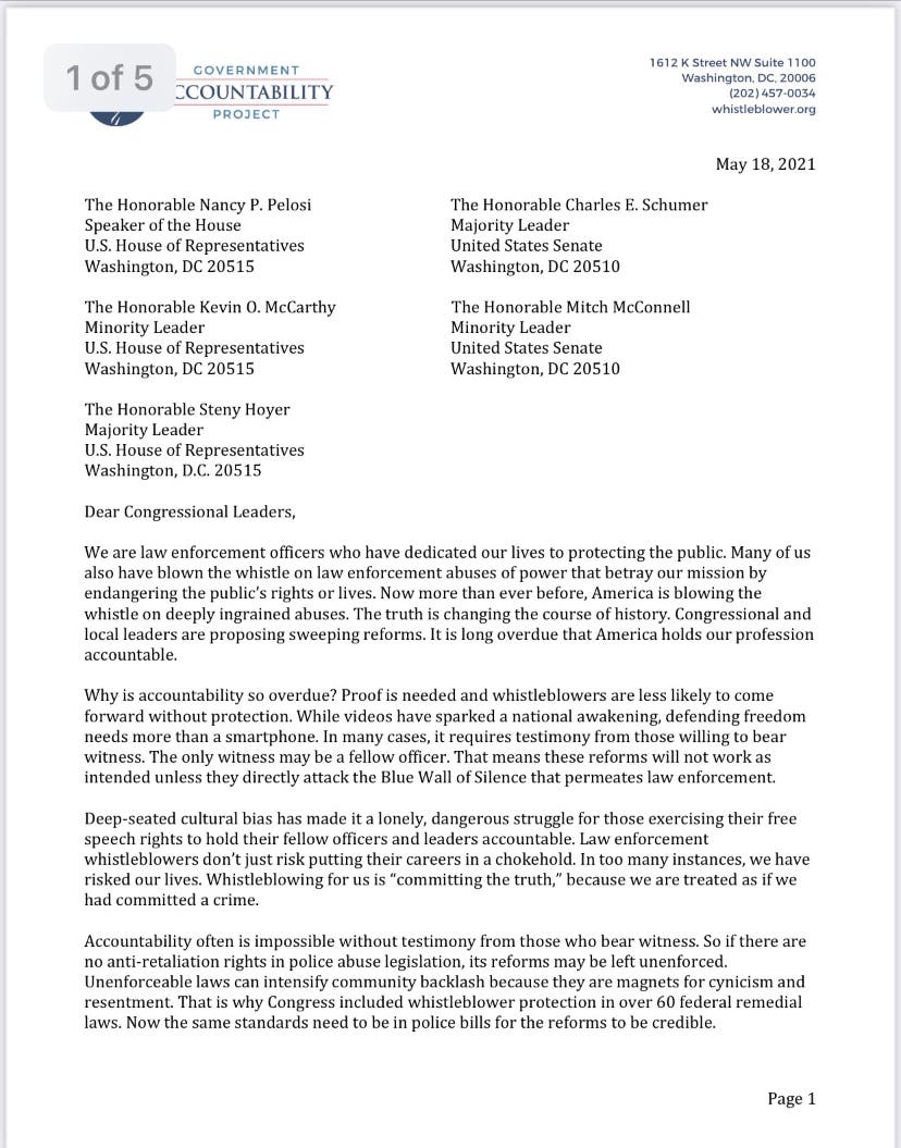 Congresswoman Nancy Pelosi, U.S. Senator Mitch McConnell and others are being asked to support police reform for whistleblowers.