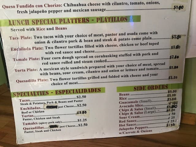 Make no mistake, the Steak and Potato is truly outstanding, and I would eat it over and over, if given a chance. It's just that I fell in love with the other two tacos unexpectedly. Actually, Nena's does have an actual menu. There was a plastic piece of cardboard toward the back near the bathrooms.