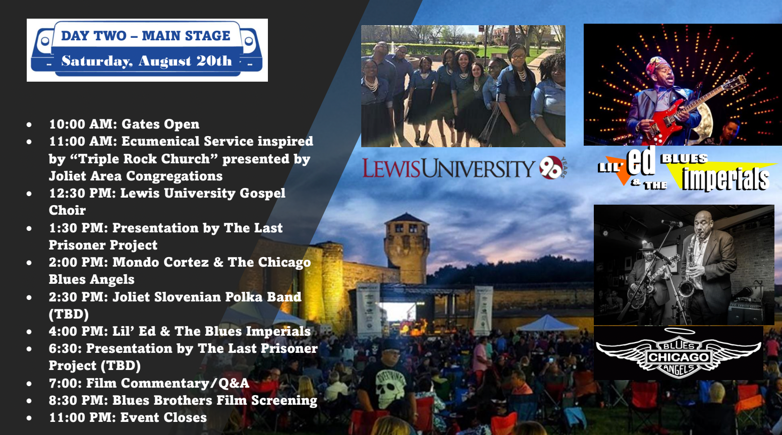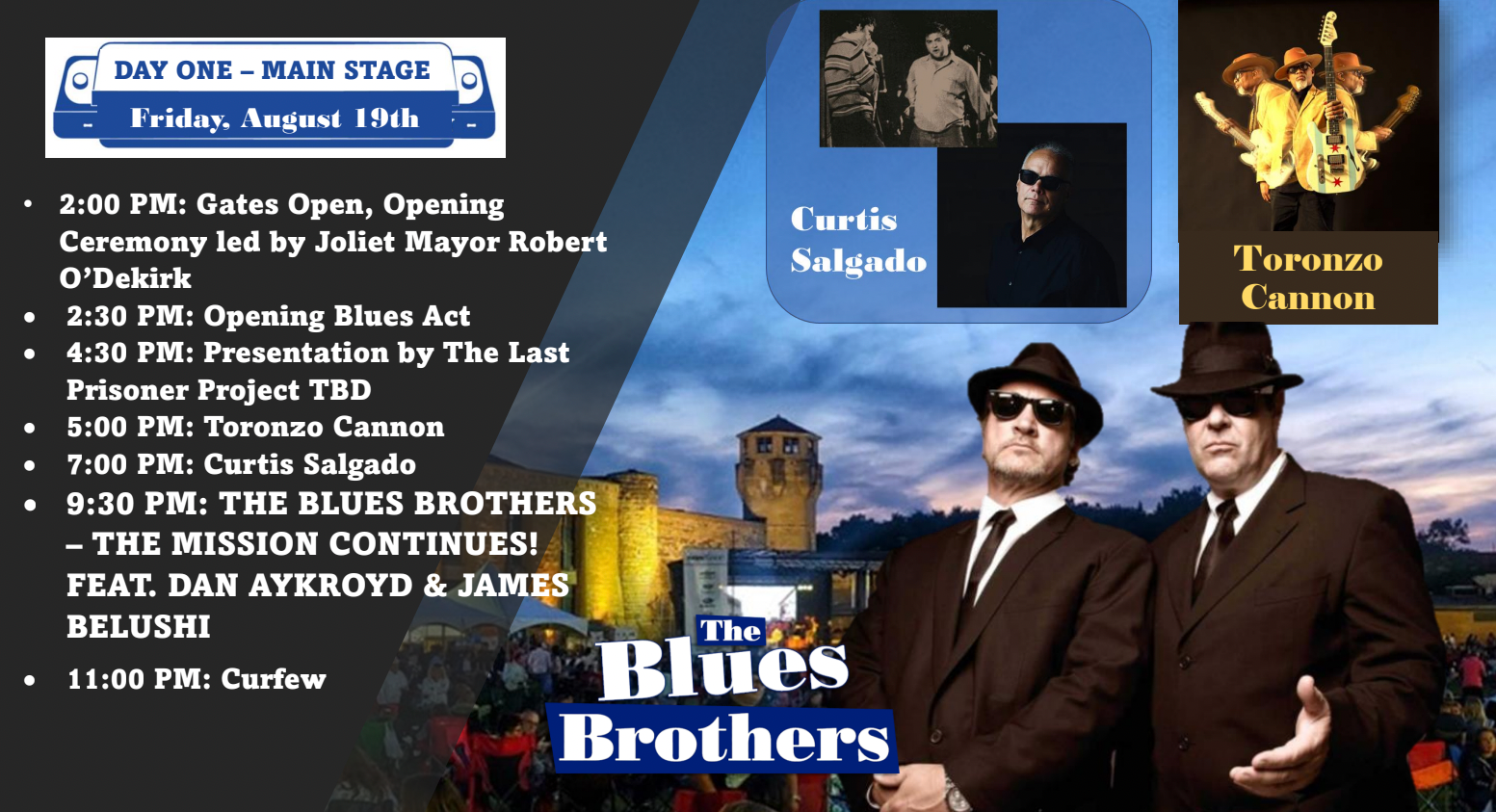 The Blues Brothers return to Old Joliet Prison for this weekend's festival, featuring one live performance by Dan Aykroyd and Jim Belushi.