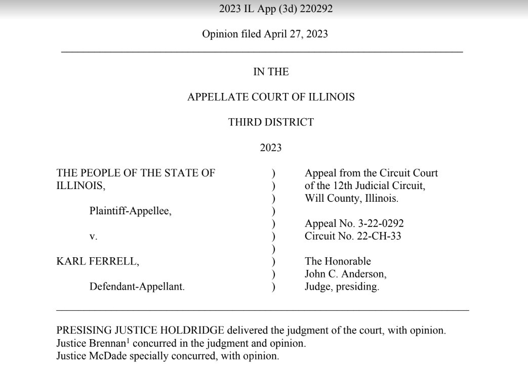 To read the entire 19-page opinion in the Karl Ferrell case, visit the Appellate Court of Illinois website and find it here.