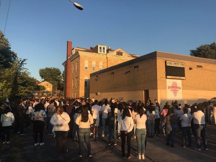 Lesly's visibly distraught father, Eduardo, took to the podium and addressed the crowd in Spanish. Afterward, one of the volunteers translated his comments into English, explaining he asked for forgiveness from his daughter "if I did something wrong."