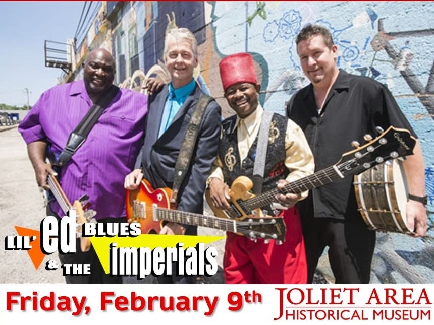 Lil' Ed & The Blues Imperials perform a live concert in the Joliet Area Historical Museum's Indoor Auditorium Theater venue on Friday, February 9th at 7pm (doors open 6:15pm).