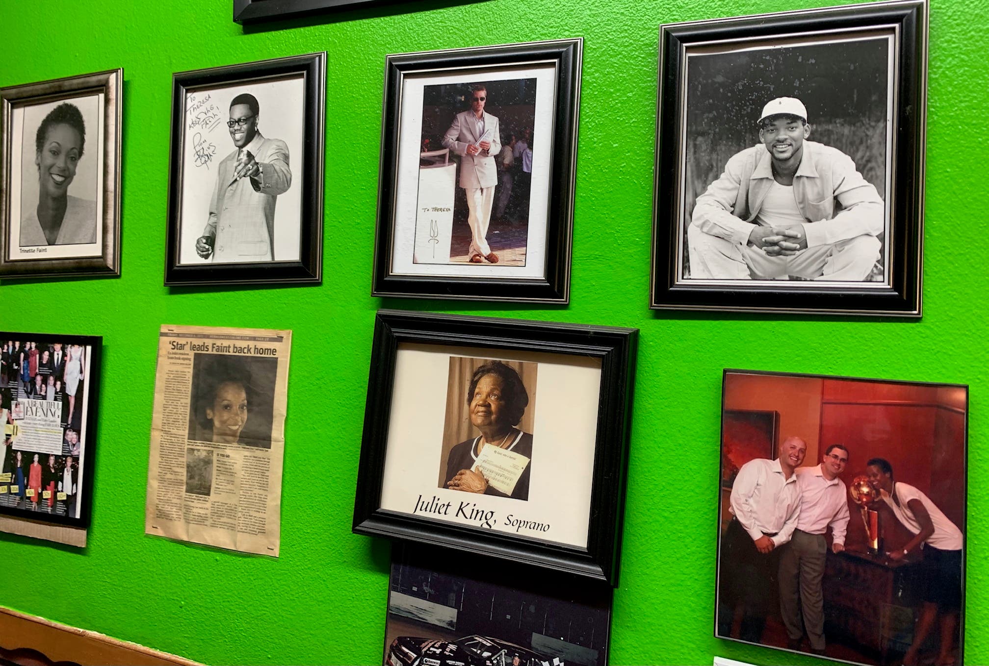 Customers of Louisiana Barbeque know that the restaurant's green wall is lined with photographs of famous Hollywood stars, including Will Smith and Jaleel White, best known for playing Steve Urkel. Many of the photographs are autographed, like ones signed by Brad Pitt, Chalize Theron and the late Bernie Mac.