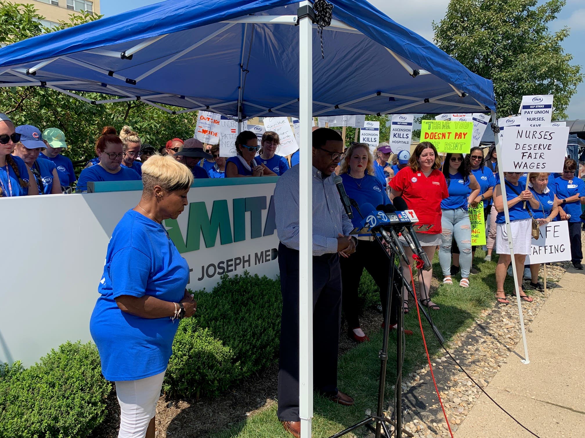 The nurses said Tuesday's press conference would highlight the overlapping crises occurring at Saint Joseph and unveil a multi-state project to pressure healthcare giant Ascension to end its practices of failing to hire and retain adequate levels of staff.