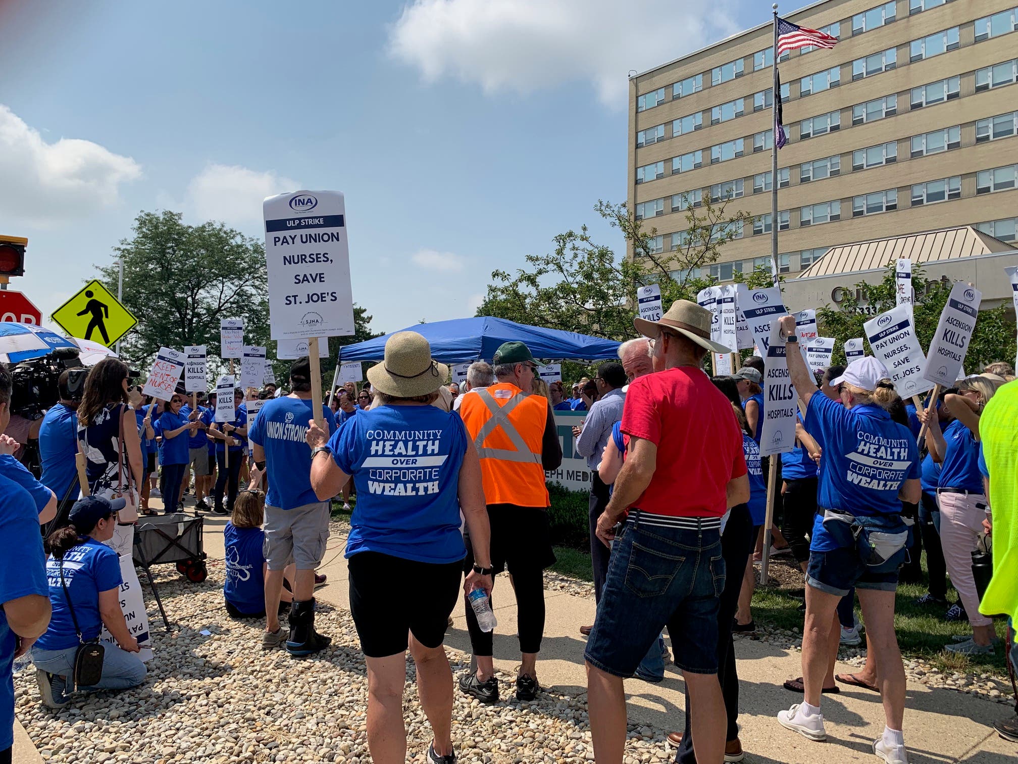 JOLIET, IL — Tuesday marked the first day of more than 500 nurses at St. Joe's hospital going on strike. Nurses say they had threatened a two-day strike after management lawyers from their hospital’s parent company, Ascension Health, refused to offer market rate wages. Ascension responded by locking all union nurses out of the hospital for four days.
