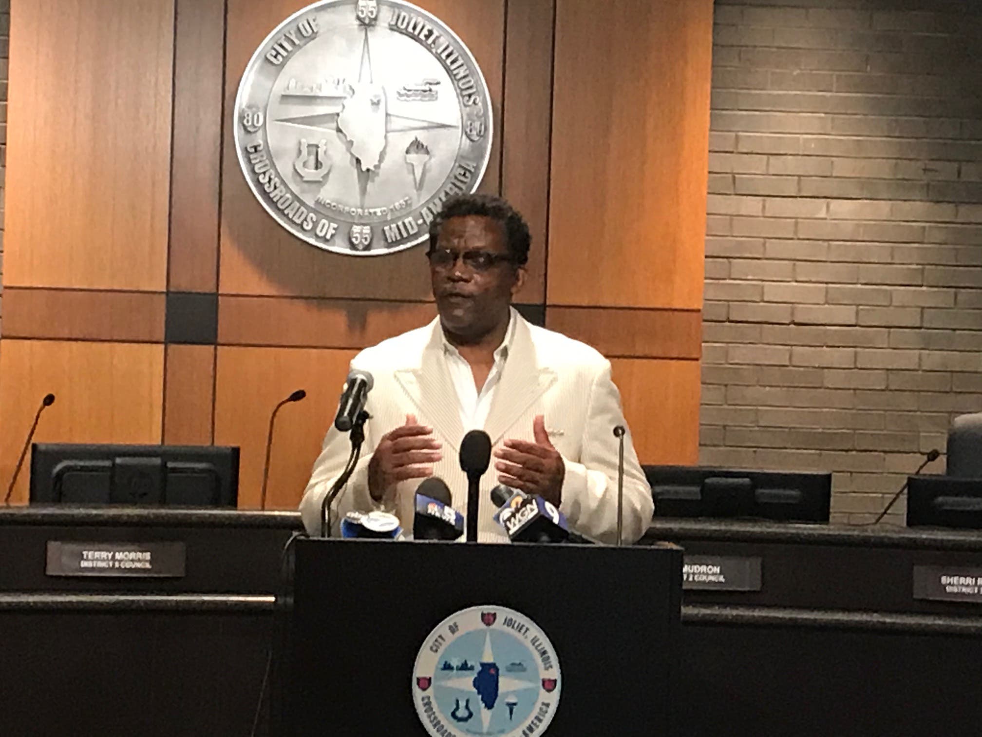 Four community leaders spoke on the mayor's behalf at Tuesday's City Hall news conference: Cornel Darden Jr., president and CEO of the South Suburban Black Chamber of Commerce, Brad Price, a retired Joliet police officer who is a member of the Joliet Black Police Officers' Association, and Rev. Lonnie Posley, pastor at Joliet's New Canaanland Church.