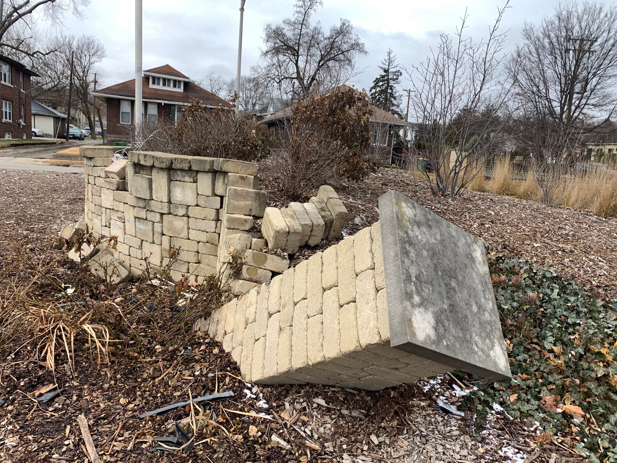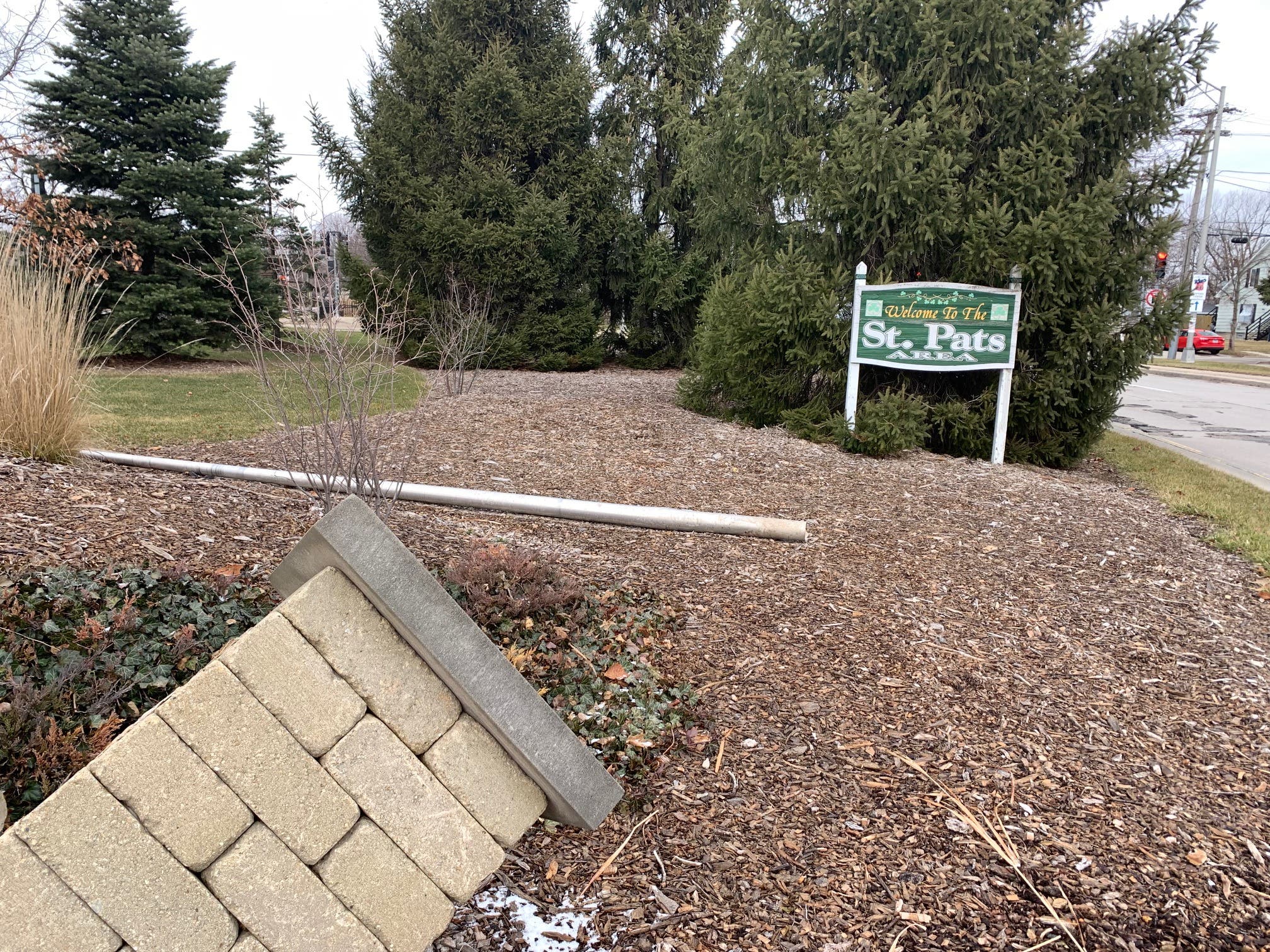 JOLIET, IL — There are several large limestone entrance signs and flag poles scattered across different borders of Joliet, but the city's gateway along northbound Center Street in the St. Pat's Area has been destroyed by an out of control driver.