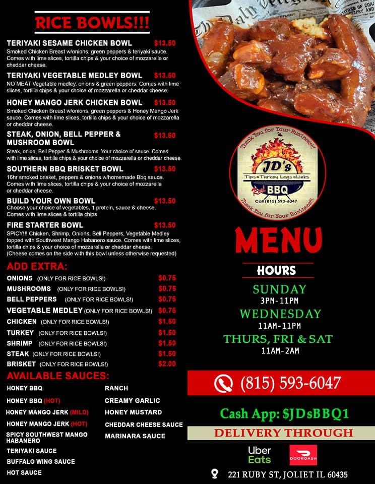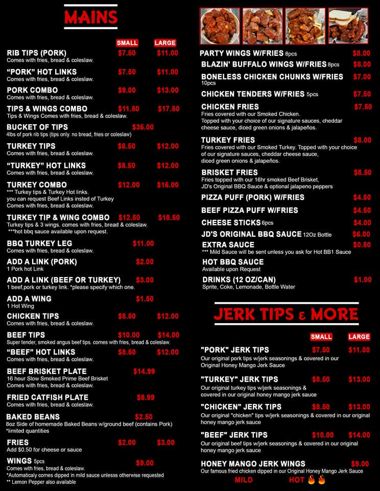 Wilson has posted his new menu on the JD's BBQ Facebook page which proclaims: "JD's BBQ restaurant offers you the best 'homemade' bbq. Delivery through UberEats, Doordash & Grubhub."