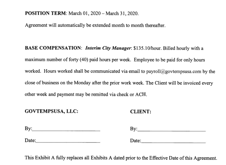 "The hourly rate includes the GovTempsUSA payment to Steven Jones and the GovTempsUSA fees," as well as FICA taxes, professional liability insurance and other matters, the proposal reads.