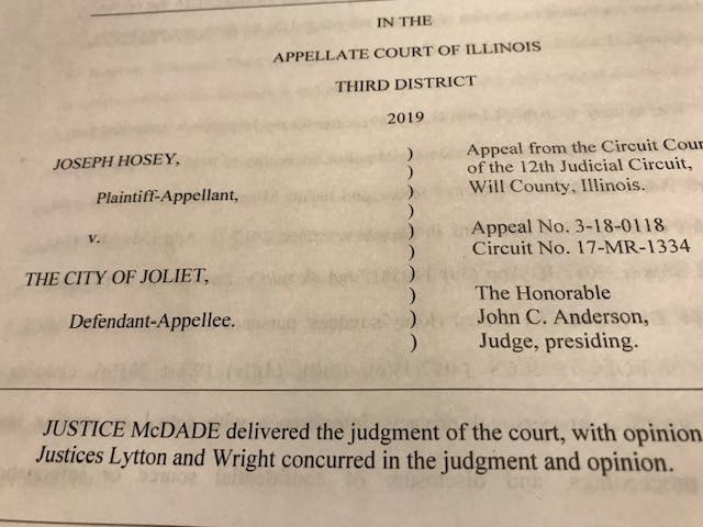 The original case went before Will Count Circuit Court Judge John Anderson and the judge ruled in favor of Joliet and against Joseph Hosey.