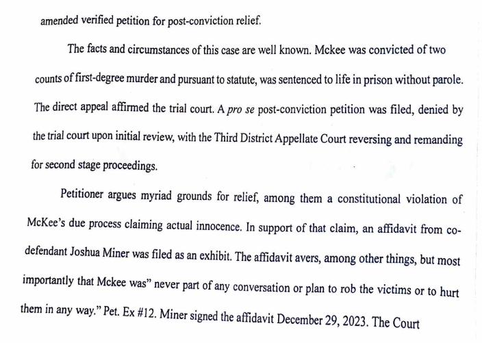 At McKee's November 2014 sentencing, now-retired Will County Judge Gerald Kinney did not want to impose a life prison term for McKee, but he was obligated to do so, the Illinois Prison Project attorneys have emphasized in their petition for executive clemency.