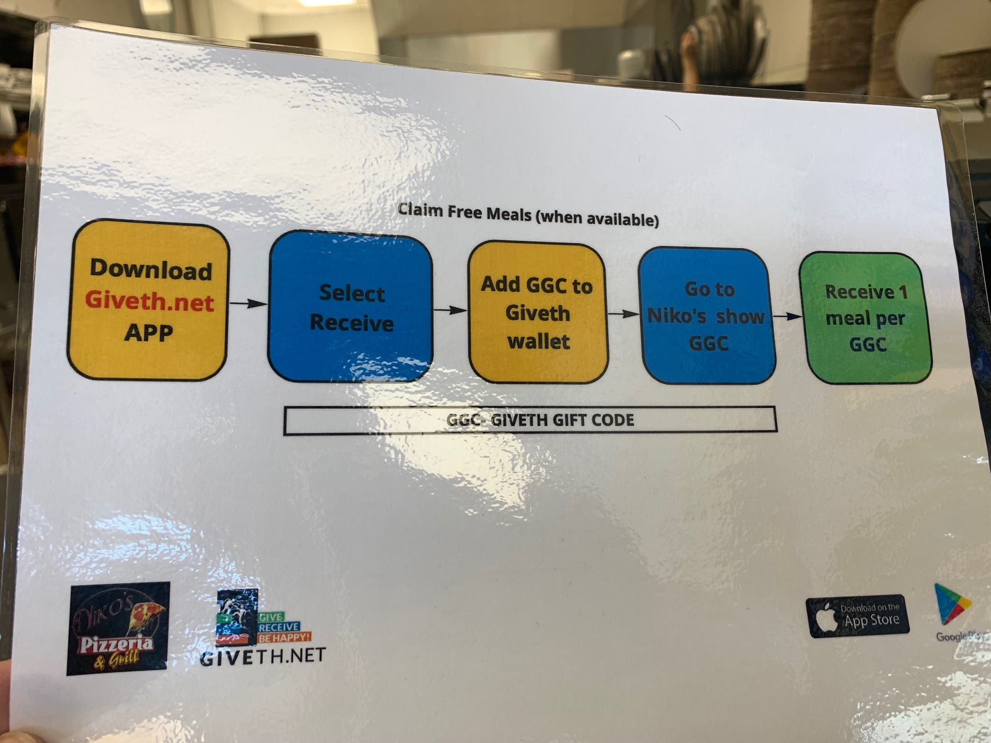 First, people must download the Giveth.net app to their phone in order to be eligible for the free meal giveaway.