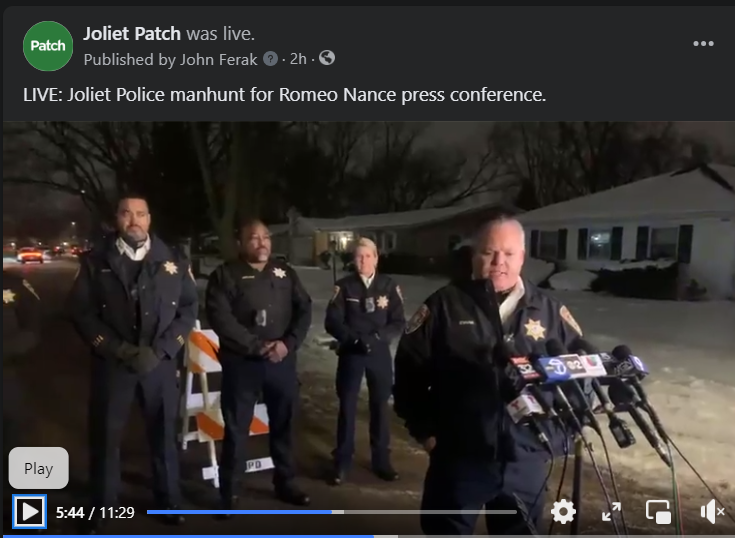 By 10 p.m., Joliet police learned that Nance had taken his own life in Texas during a confrontation with police there. They had previously described him as "armed and dangerous."