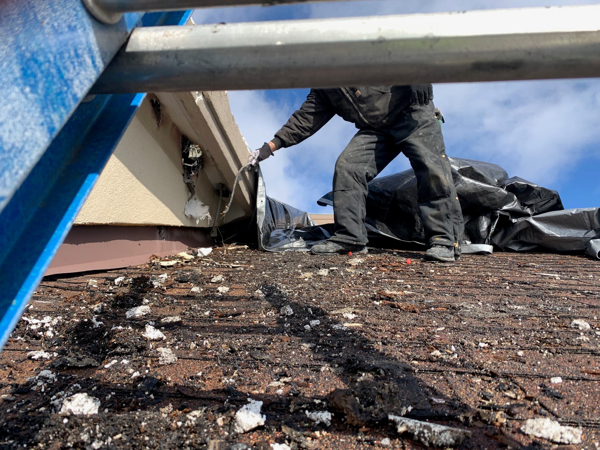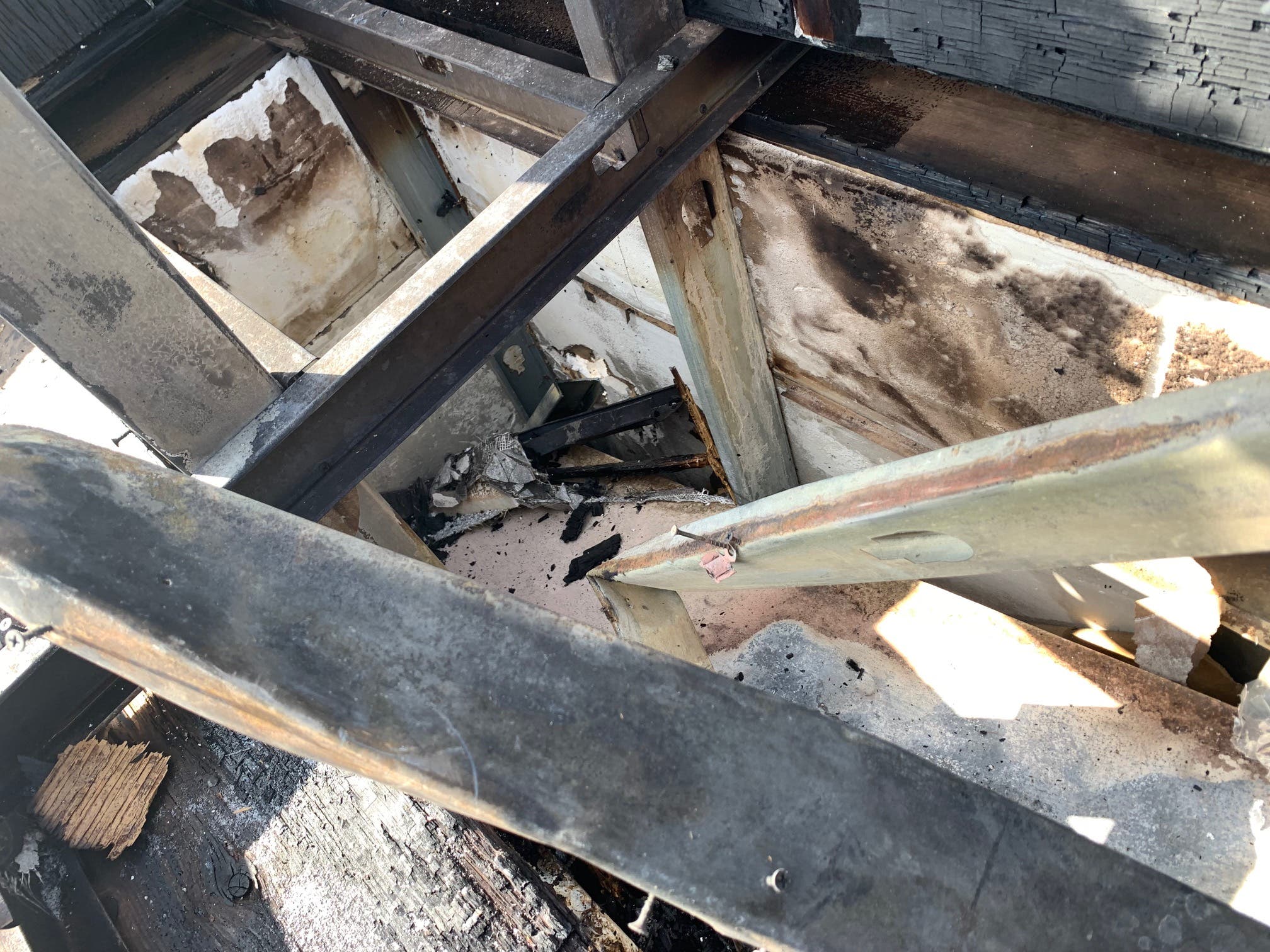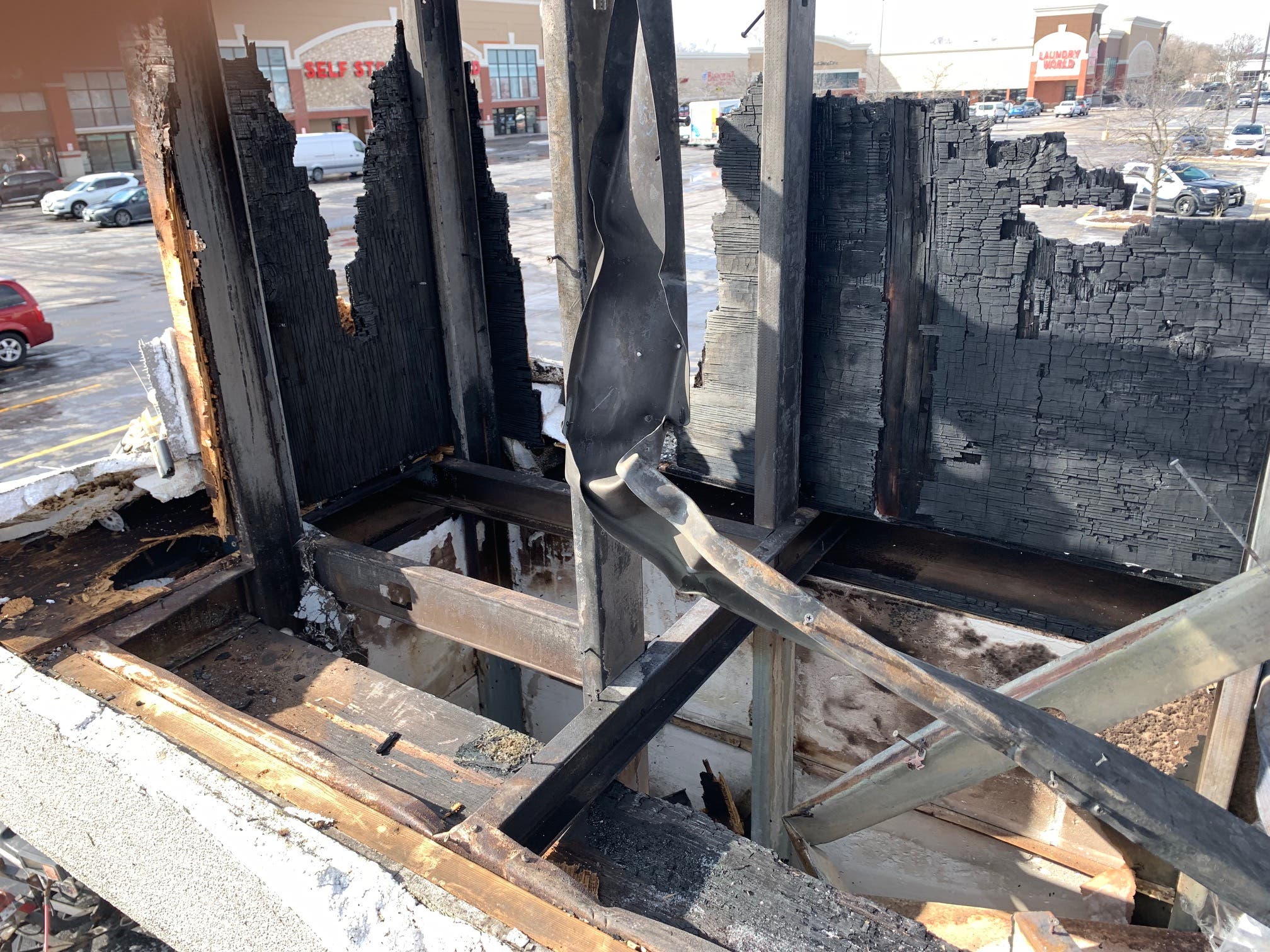 Workers repairing the roof on Friday morning showed Joliet Patch where they suspect the fire originated: a broken electrical wire that ran power to light the neon restaurant sign around the entire building.