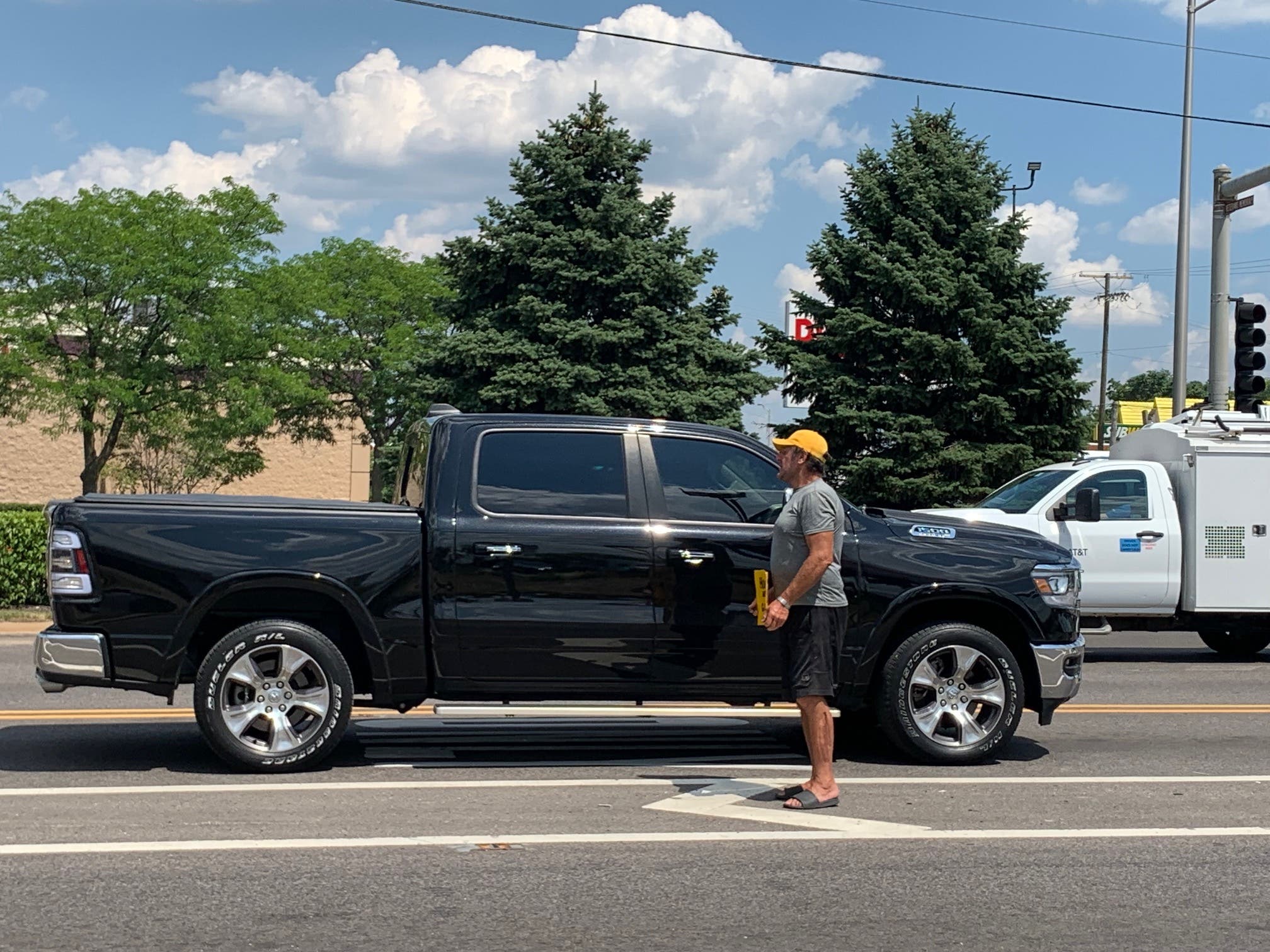 On several occasions, the man had his back turned to traffic as large semi-trailers whizzed right past him, heading south toward Interstate 80.
