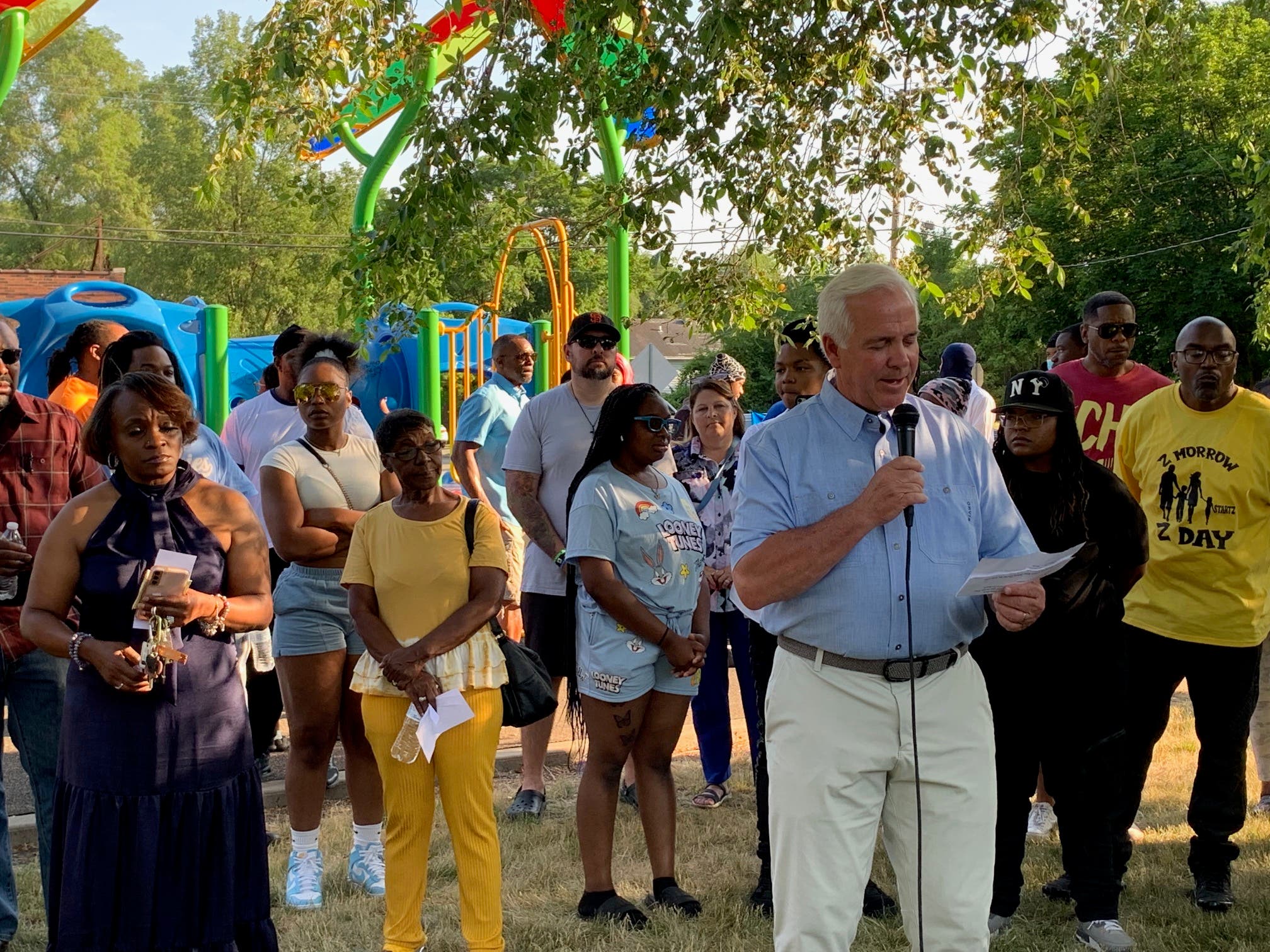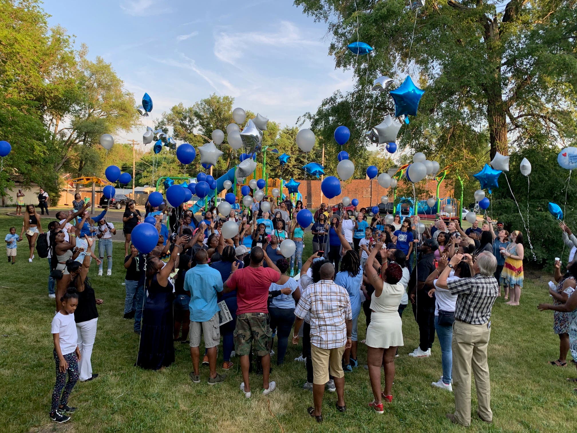 JOLIET, IL — A crowd of 150 people including Joliet Mayor Terry D'Arcy, Joliet Police Department Deputy Chief Carlos Matlock, Garland Mays of the Will County Executive's Office and Joliet City Councilwoman Suzi Ibarra gathered under a large shade tree Friday evening to mark the prayer vigil and balloon launch for Antoine Shropshire.