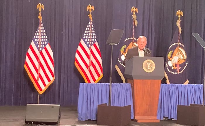 Before Biden was introduced, Durbin talked about the insurrection attempt at the U.S. Capitol on Jan. 6, 2021.