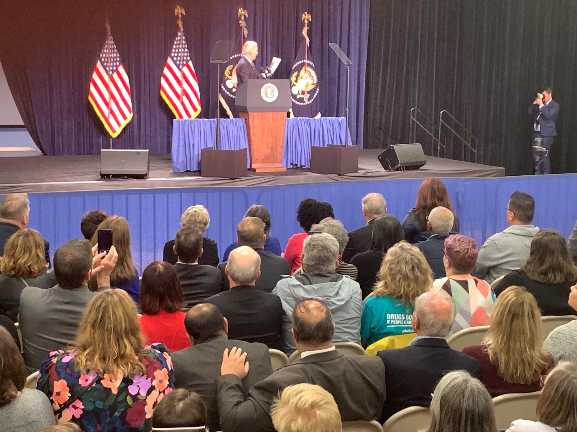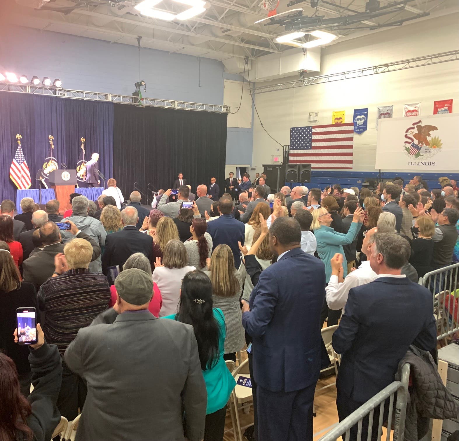 Before Biden took the podium, the crowd heard from Illinois' most powerful Democrats: Sens. Dick Durbin and Tammy Duckworth, as well as Congresswoman Lauren Underwood. The crowd was reminded how Republican U.S. Senators, notably Rick Scott in Florida and Ron Johnson of Wisconsin, are trying to get rid of Social Security and Medicare and use that money so that big corporations and businesses won't have to pay any taxes.