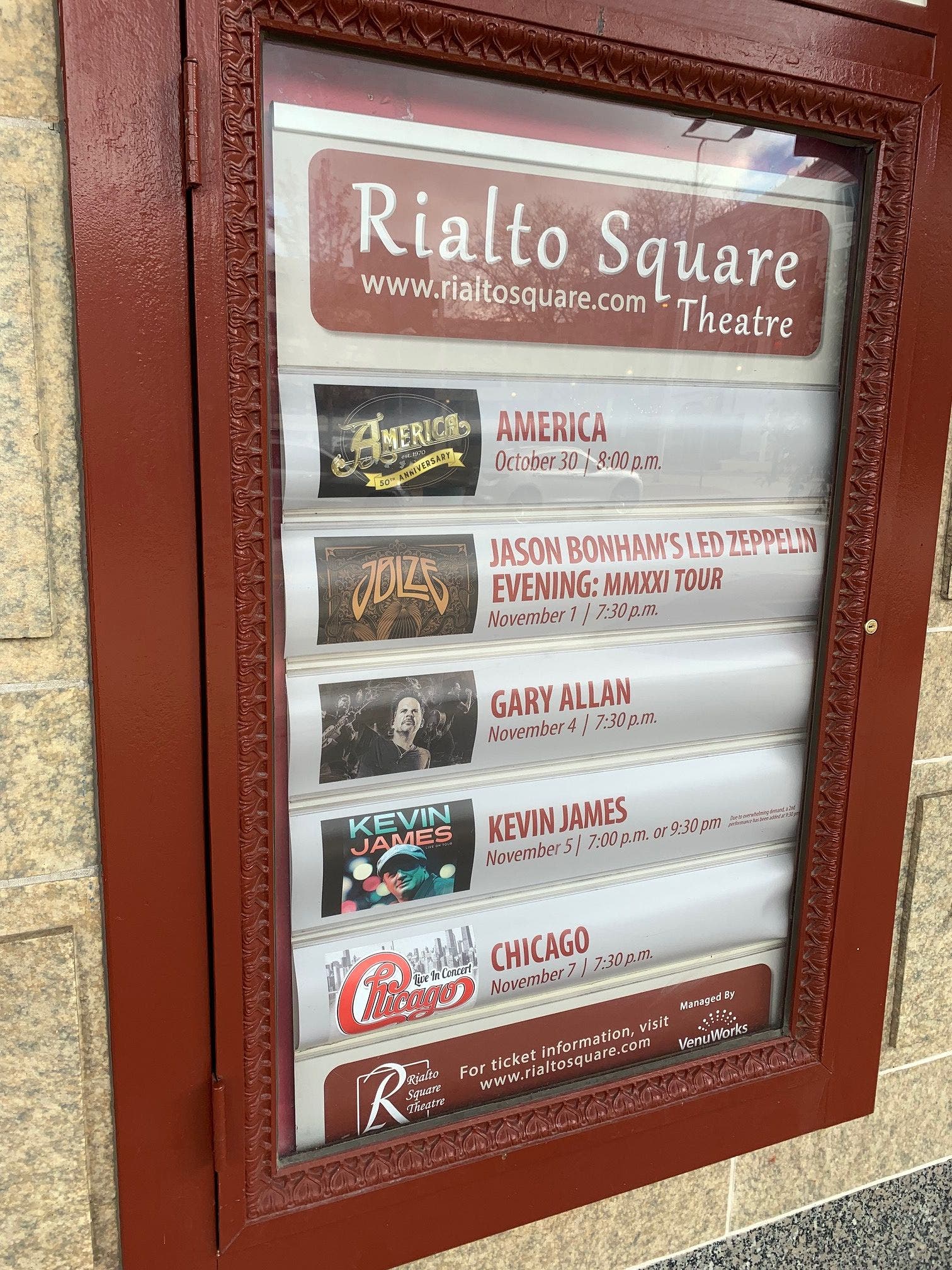 A total of five shows, most sellouts and near sellouts, take place the first week of November at the Rialto Square Theatre in Joliet.