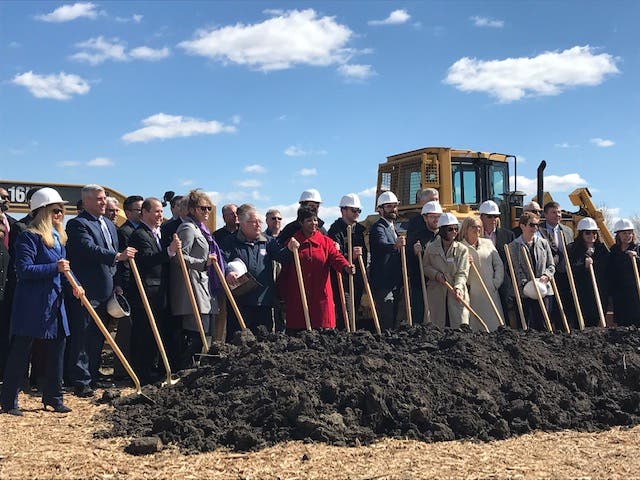 Back at the March 22 groundbreaking, following the cues of Cullinan Properties, the heavy equipment operators fired up their diesel engines. The men drove back and forth for at least a half hour, turning over small mounds of dirt in the Joliet farm fields near I-55 and I-80.