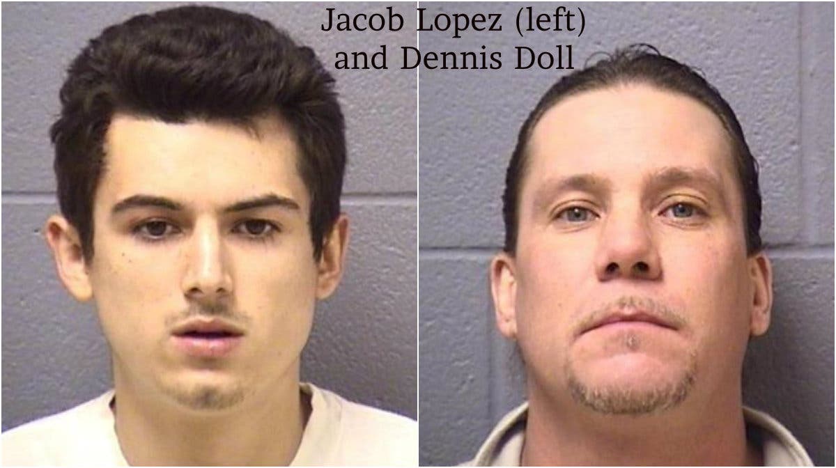 The friend, 43-year-old Dennis Doll of Joliet, was arrested as well after he allegedly cursed and threatened the residents who called the cops on his buddy, Jacob Lopez, 20.