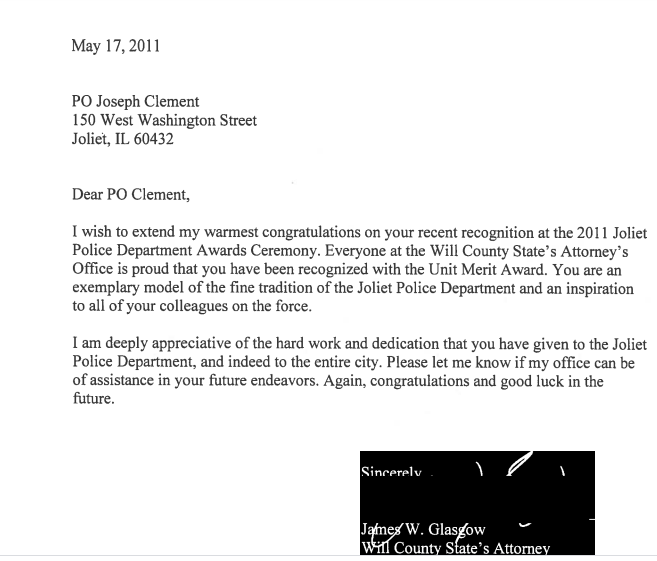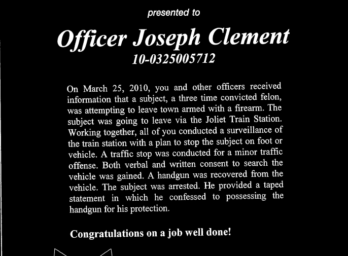 Clement serves as an elected official on the Joliet Park Board. Patch obtained his Joliet Police Department personnel file in December as a result of a Freedom of Information Act request. The documents showed that Clement had had no disciplinary measures taken against him at any point during the past decade. Clement did have several awards and commendations during that period.